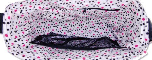 104411 Features: -Diaper bag.-Hit the road equipped and in style with this zahara messenger bag.-Black and white zebra print throughout the outside body with a black, white and paradise pink confetti dot print inside and paradise pink trim.-Outside of bag has two side bottle pockets and one wide Velcro closure pocket on back.-Inside, two pockets and large mesh divider keep all your travel necessities organized.-Magnetic closure keeps inside contents secure.-28" 48" Adjustable strap makes it easy to carry or hang across stroller handles.-Bag measures: 14" x 12" x 4". Includes: -Removable, coordinating changing pad included. Color/Finish: -Color: Black and White. Collection: -Zahara collection. Warranty: -30 Days warranty.