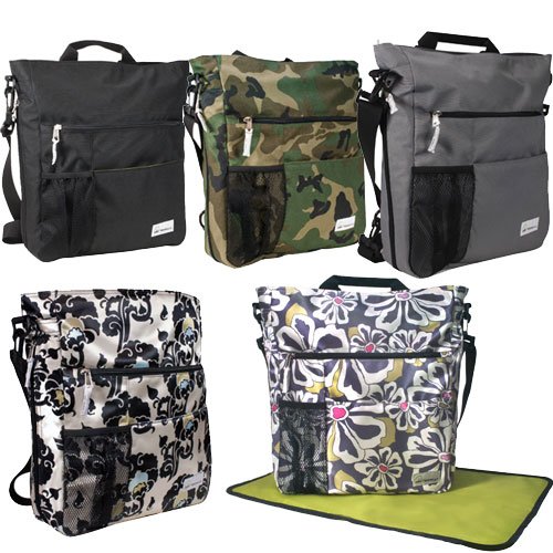 This diaper bag by Amy Michelle is light weight, durable AND stylish enough for both Mom and Dad! The across-the-chest strap or backpack option allows you to keep baby's essentials out of the way and be hands free, a perfect match for the on-the-go parent. Bag features Mom's section in front, baby's organization in the middle and separate changing area in the back. Features: a changing pad (24" x 14"), 5 pockets for maximum organization, 2 internal & 1 external baby/water bottle pockets, slip pockets on the back, stroller attachments included, top zipper closure, binky holder, adjustable shoulder strap can be worn cross body or on shoulder. Converts to quick backpack, and wipe spots easily with water resistant Poly Satin Fabric or 600D Poly fabric. The bright antimicrobial lining stays clean! Size: 12"L x 4-6"W x 14"H