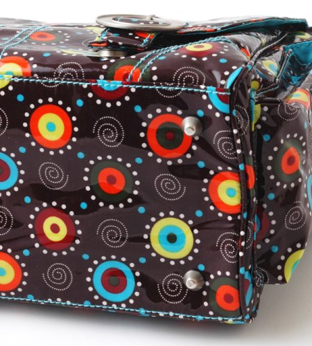 0-88161-23240-9 Features: -Two magnetic clips keep the top flap closed.-Comes in chocolate.-The polyurethane exterior coating makes clean up a snap.-Roomy interior with three pockets and two elastic bottle loops.-Adjustable shoulder strap.-Three outside pockets.-Matching ThinsulateTM insulated bottle bag.-Coordinating zippered pouch.-Large fold-out padded changing pad.-Kalencom Diaper Bags are AZO free. Dimensions: -Overall Dimensions: 11'' H x 6'' W x 14'' D.