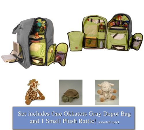 Whether you're driving to grandma's house for the weekend or flying across the ocean, Okkatots' premium Travel Baby Depot Bag fits all your travel needs. Its roomy design carries absolutely everything for little ones but still stays conveniently organized. To cope with the unexpected delays and doldrums of traveling, this unique travel bag was created with you in mind. ? 300D polyester Oxford outer, PVC coated for water resistance ? 100% strong nylon lining, PU coated ? Opens like a closet for easy access to everything or zip down like a regular backpack for use on the go ? Entertain little ones along the way with DVDs. A portable DVD player pocket with elastic loop keeps DVD player in place when in use. Player slides quickly and easily into the pocket when you need to go. (DVD player not included) ? Additional pocket stores DVDs or travel papers. ? Opens to a complete change station housing a large padded change mat, wet-wipes pouch and pockets for other items. ? Diaper dispenser that holds up to 16 diapers. ? Convenient access to the main compartment from the change station. ? Insulated bottle/food pocket holds at least 6 large bottles. Opens fully for easy cleaning. ? Padded shoulder straps include quick-access cell phone pocket and loop for toys, keys or pacifier. ? Find small items easily with handy pockets in the top of the bag. ? Grab keys quickly from the key hook inside the top of the bag. ? Comes with unique pacifier pouch, laundry bag, change mat and wet-wipes dispenser.