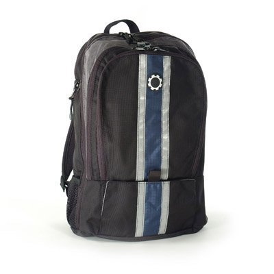 Center Stripe Blue Backpack Diaper Bag from DadGear Constructed with large dual pull zippers this features top-notch materials. Styled in basic black it's fashioned with a stylish blue stripe down the center. The wide clamshell-style opening makes it easy to access the contents of the pack while the diaper hammock keeps diapers close to the top. The subtle styling and modern look will have everyone fooled. A slim changing pad is included. You'll love the hands free design of this backpack allowing you to tend to baby unhindered. This diaper bag also features built-in stroller hangers!