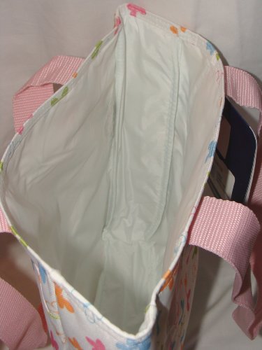 Brand new with tag Jansport Classic tote. Great size to take homework to the library, use as a purse or gym bag. White pastel butterfly pattern. Matching Superbreak backpack is also available. Hand washable, line dry. White lining on the inside. Pink web handles. One small velcro closure pocket on the front of the tote.