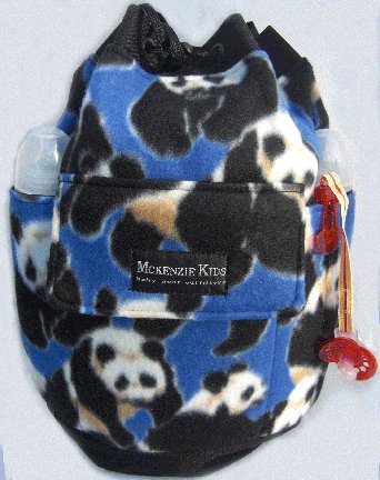 This fun Backpack | Rucksack can be use as a diaper bag can be slung over the shoulder or worn as a backpack! It cinches at the top on the market. It is a high quality Diaper Backpack made with fleece material with a fully-lined i420 denior nlyon interior made by McKenzie Kids.