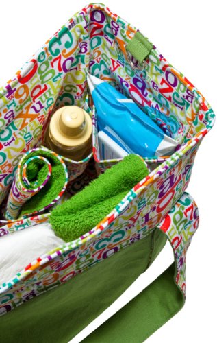 - Alphabet soup print has colorful letters and numbers in various sizes and print directions, coordinates with many different solid colors or look for the matching accessories