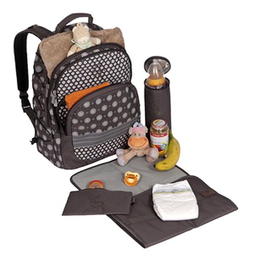 The perfect women's backpack diaper bag by Lassig. Inner compartment, changing mat, insulated bottle holder, zip pouch, antibacterial wet pocket, utensil pocket and insulated compartment. Includes adjustable, padded shoulder straps. Measurements: 12.5 X 6.5 X 16. Material: 100% Polyester. Material is water repellent. ***THIS ITEM DOES NOT SHIP OUTSIDE OF THE USA***